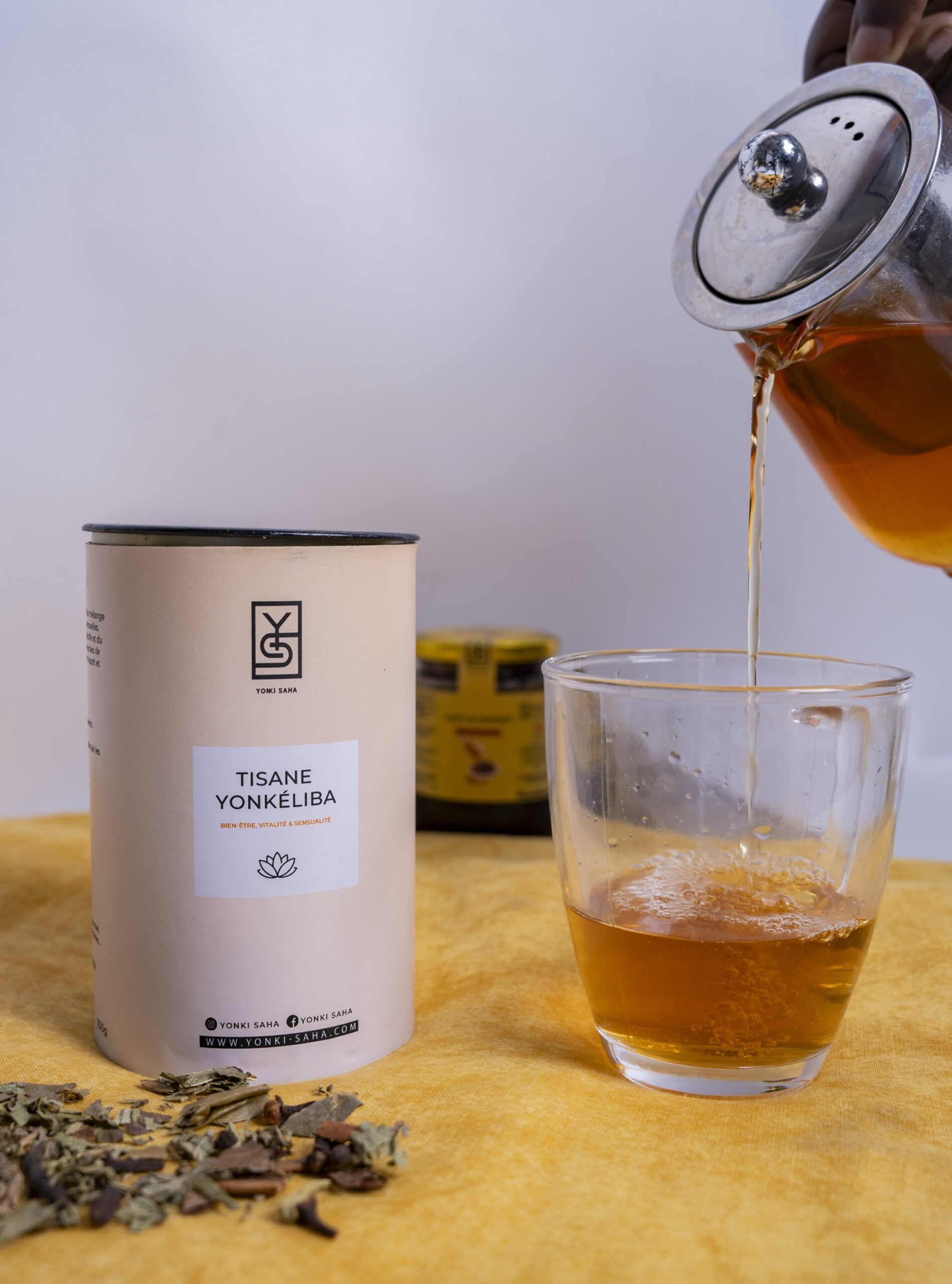 Découvrez Yonkeliba, une infusion authentique à base de kinkeliba, clou de girofle et poivre long. Cette tisane détoxifie l’organisme, soutient le foie, facilite la digestion, renforce l’immunité et apaise le corps grâce à ses antioxydants naturels. Légèrement épicée et réconfortante, elle réveille les sens tout en douceur et accompagne votre bien-être au quotidien.